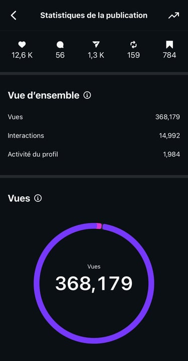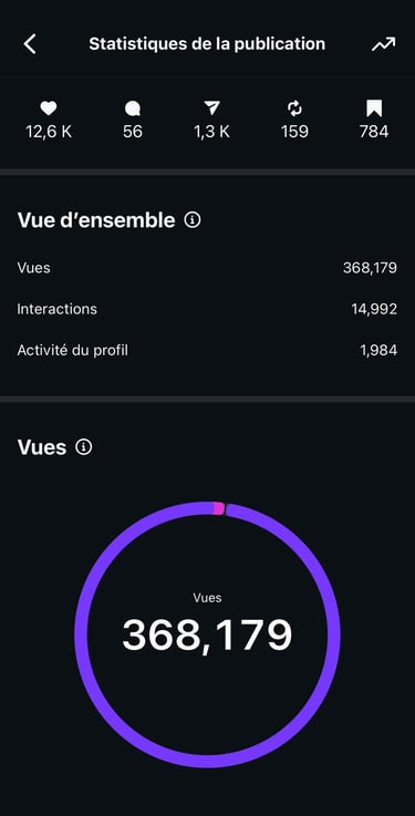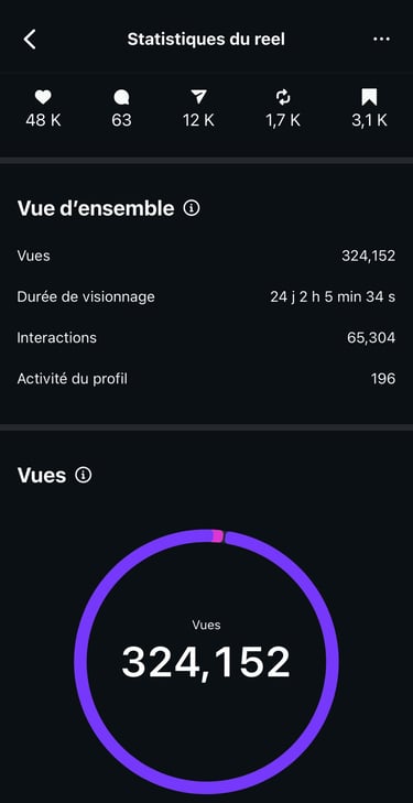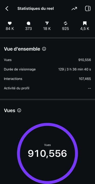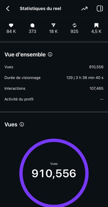 Mes contenus ont généré plus de 5 millions de vues et 200 000 interactions, offrant une visibilité maximale aux marques que j’accompagne.
